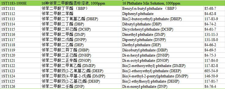 16種鄰苯二甲酸酯混合標(biāo)準(zhǔn)品(純度99%):正己烷溶解;