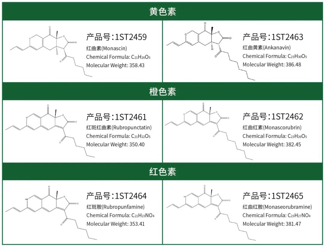 值得注意的是,紅曲色素(又稱紅曲紅)是發(fā)酵產(chǎn)生的多種天然色素的混合物,由于發(fā)酵工藝的不同,市售紅曲色素所含的色素成分及其含量不盡相同,也并非上述所有常見成分均可檢出。