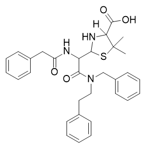 (4S)-2-(2-(benzyl(phenethyl)amino)-2-oxo-1-(2-phenylacetamido)ethyl)-5,5-dimethylthiazolidine-4-carboxylic acid