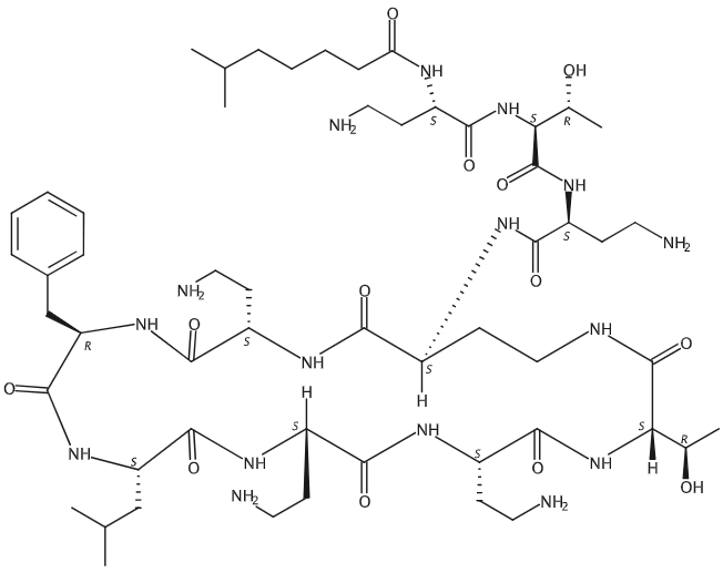 1,4,7,10,13,16,19-Heptaazacyclotricosane, cyclic peptide deriv.; 1-[(2S)-4-Amino-2-[(6-methyl-1-oxoheptyl)amino]butanoic acid]polymyxin B1; N2-(6-Methyl-1-oxoheptyl)-L-2,4-diaminobutanoyl-L-threonyl-L-2,4-diaminobutanoyl-L-2,4-diaminobutanoyl-L-2,4-diaminobutanoyl-D-phenylalanyl-L-leucyl-L-2,4-diaminobutanoyl-L-2,4-diaminobutanoyl-L-threonine (10→4)-lactam; Sequence Length: XTXXXFLXXT