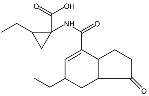 2-Ethyl-1-[[(6-ethyl-2,3,3a,6,7,7a-hexahydro-1-oxo-1H-inden-4-yl)carbonyl]amino]cyclopropanecarboxylic acid; Cyclopropanecarboxyl?ic acid, 2-?ethyl-?1-?[[(6-?ethyl-?2,?3,?3a,?6,?7,?7a-?hexahydro-?1-?oxo-?1H-?inden-?4-?yl)?carbonyl]?amino]?-