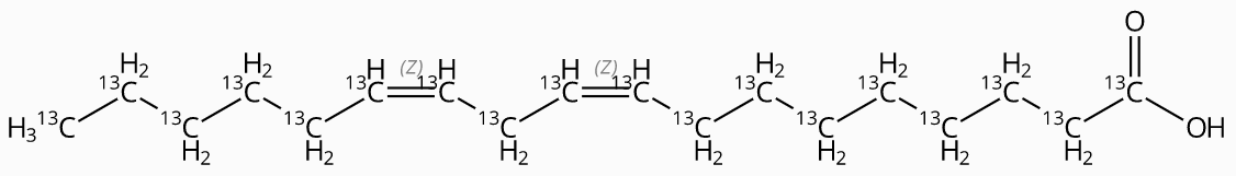 9,12-Octadecadienoic-1,2,3,4,5,6,7,8,9,10,11,12,13,14,15,16,17,18-13C18 acid, (9Z,12Z)-; (9Z,12Z)-9,12-Octadecadienoic-1,2,3,4,5,6,7,8,9,10,11,12,13,14,15,16,17,18-13C18 acid