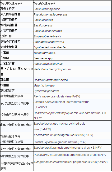 表中列了33種農(nóng)藥,大多數(shù)為生物農(nóng)藥。個(gè)別農(nóng)藥如三十烷醇,則存在于自然界植物或昆蟲中蠟質(zhì)中,也無(wú)毒性,因此也被列入豁免清單。