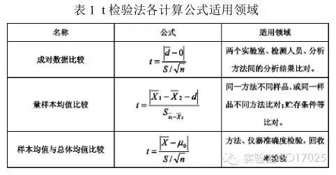 t檢驗(yàn)法適用于樣本容量較小、樣本方差沒(méi)有顯著性差異的兩組數(shù)據(jù)的比較檢驗(yàn)。t檢驗(yàn)法有三種,分別適用于不同類型和不同目的的統(tǒng)計(jì)檢驗(yàn),見(jiàn)表1。